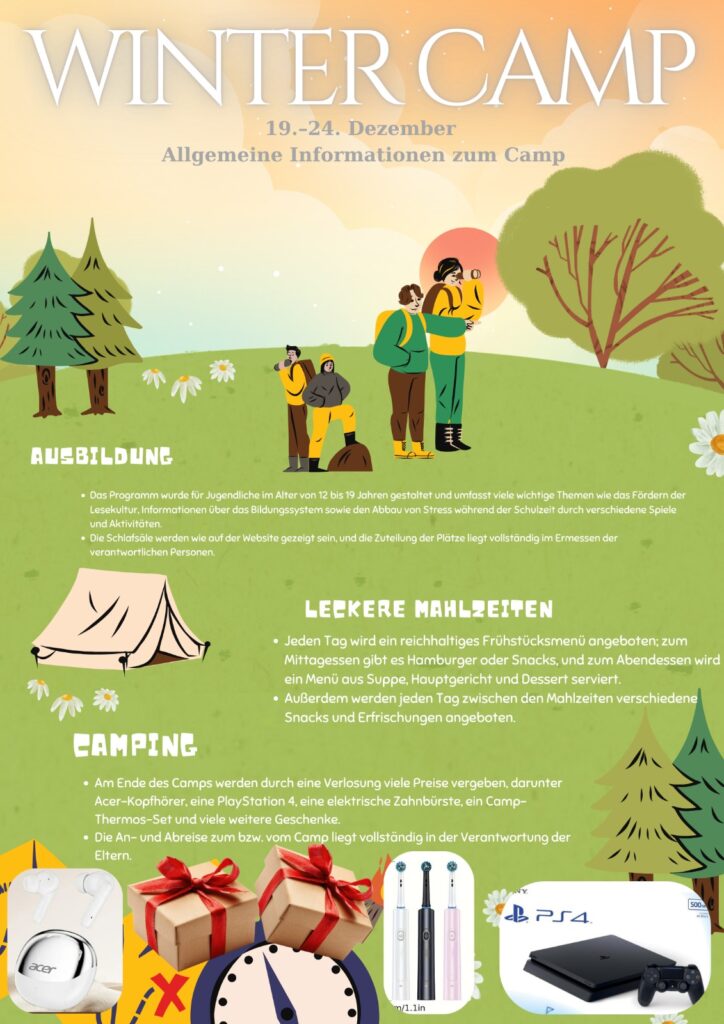Das Programm wurde für Jugendliche im Alter von 12 bis 19 Jahren gestaltet und umfasst viele wichtige Themen wie das Fördern der Lesekultur, Informationen über das Bildungssystem und den Abbau von Stress, der während der Schulzeit entsteht.